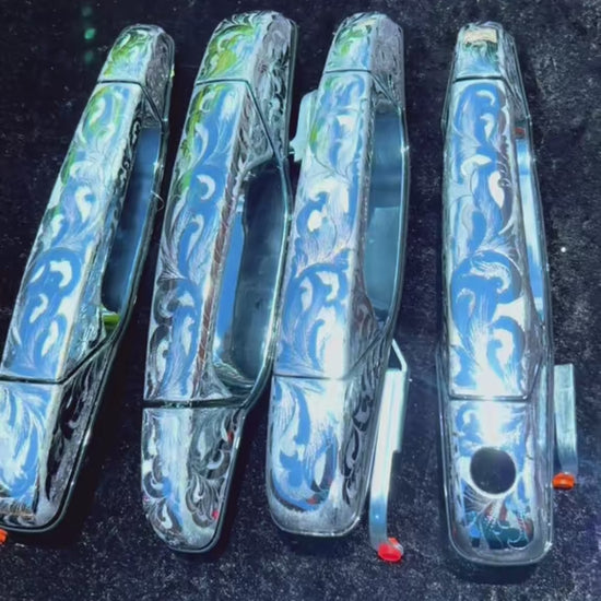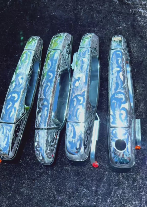 Transform your vehicle's exterior with these premium hand-engraved door handles featuring intricate custom detailing that adds sophisticated style to every entry and exit.